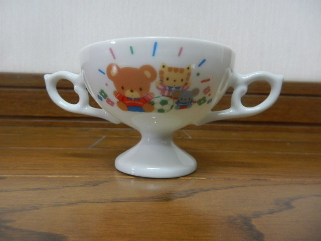 - レトロ ファンシー 陶器製 【フルーツカップ 脚付き】 スイーツ 皿 アイス アニマル 動物 絵柄 模様 キッチン 食器 子供 可愛い ユニーク