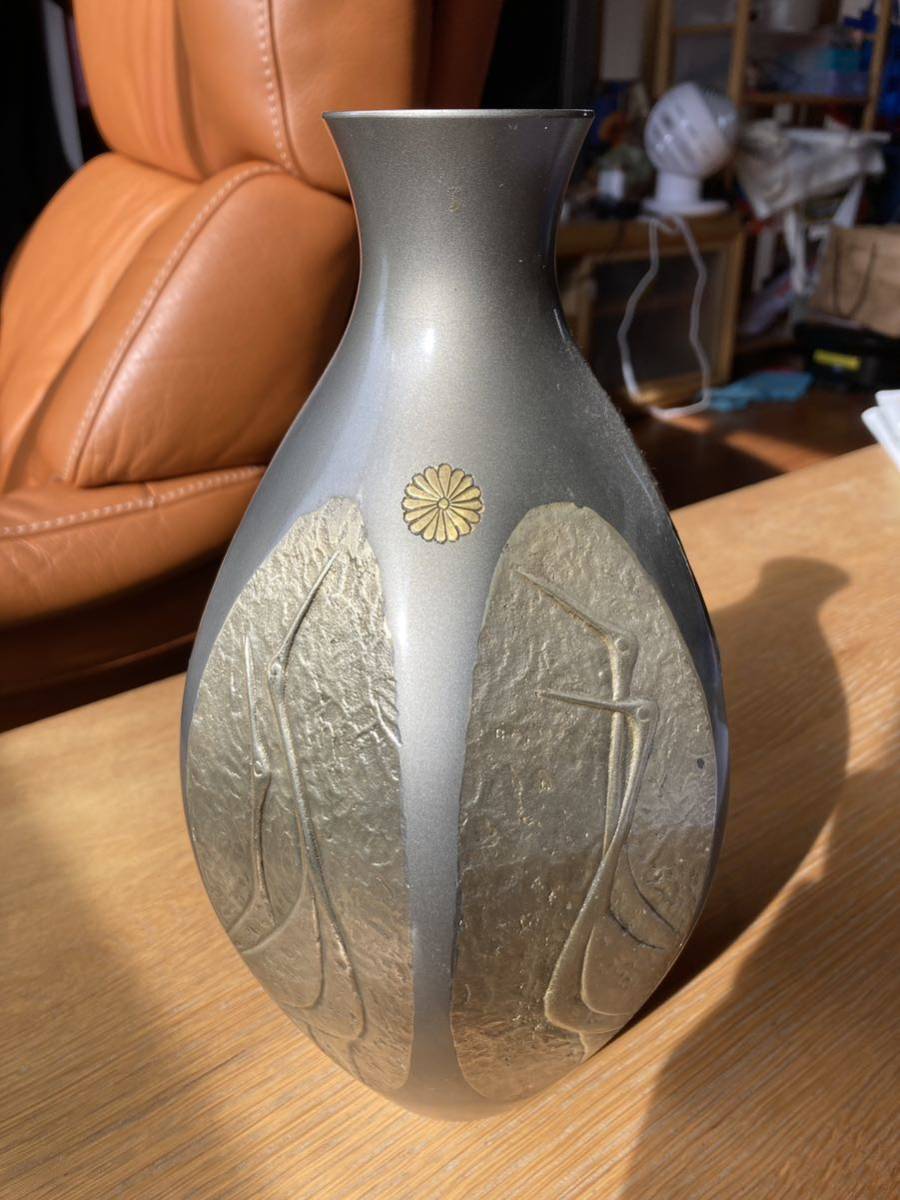 - 花瓶 花器 鋳銅 勝峰作 青銅花瓶 菊紋入 一輪挿し アンティーク レトロ