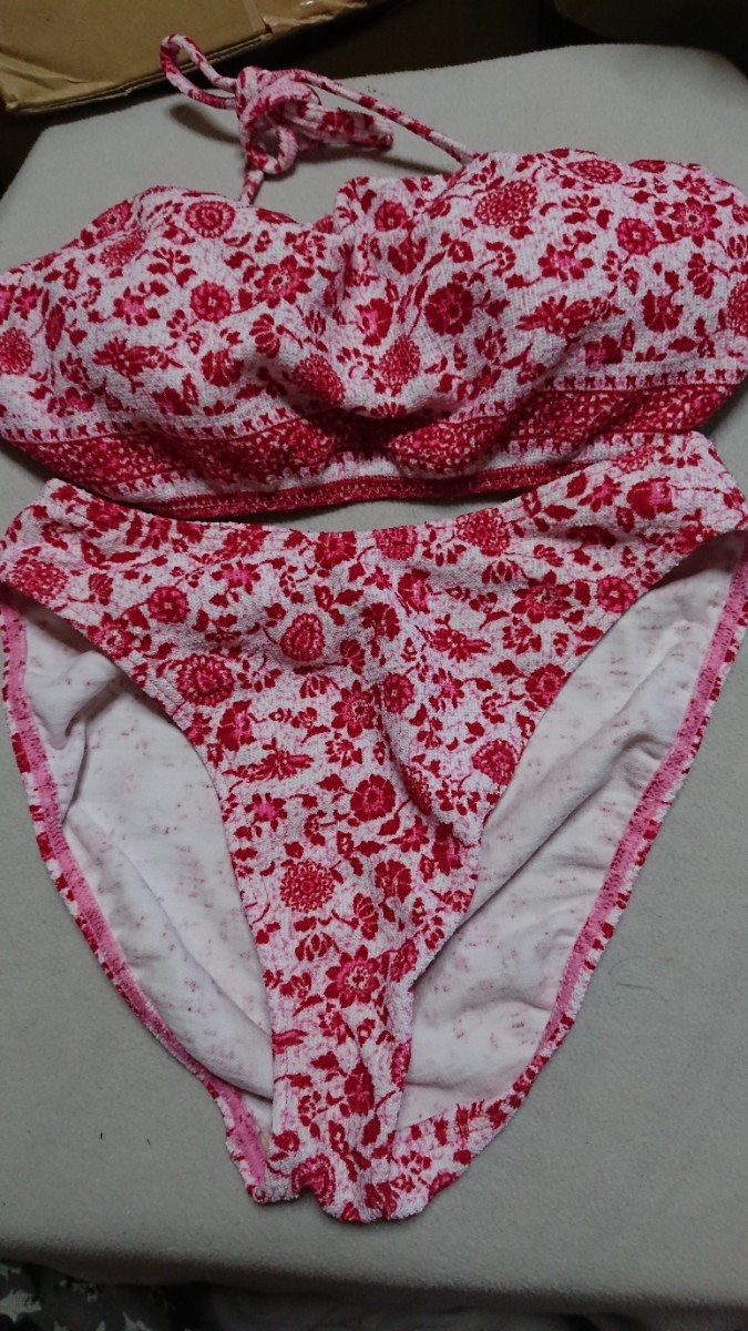 - M1752◆パレオ付き3点セット◆marie claire◆セレブなレッド系花柄ビキニ◆9M