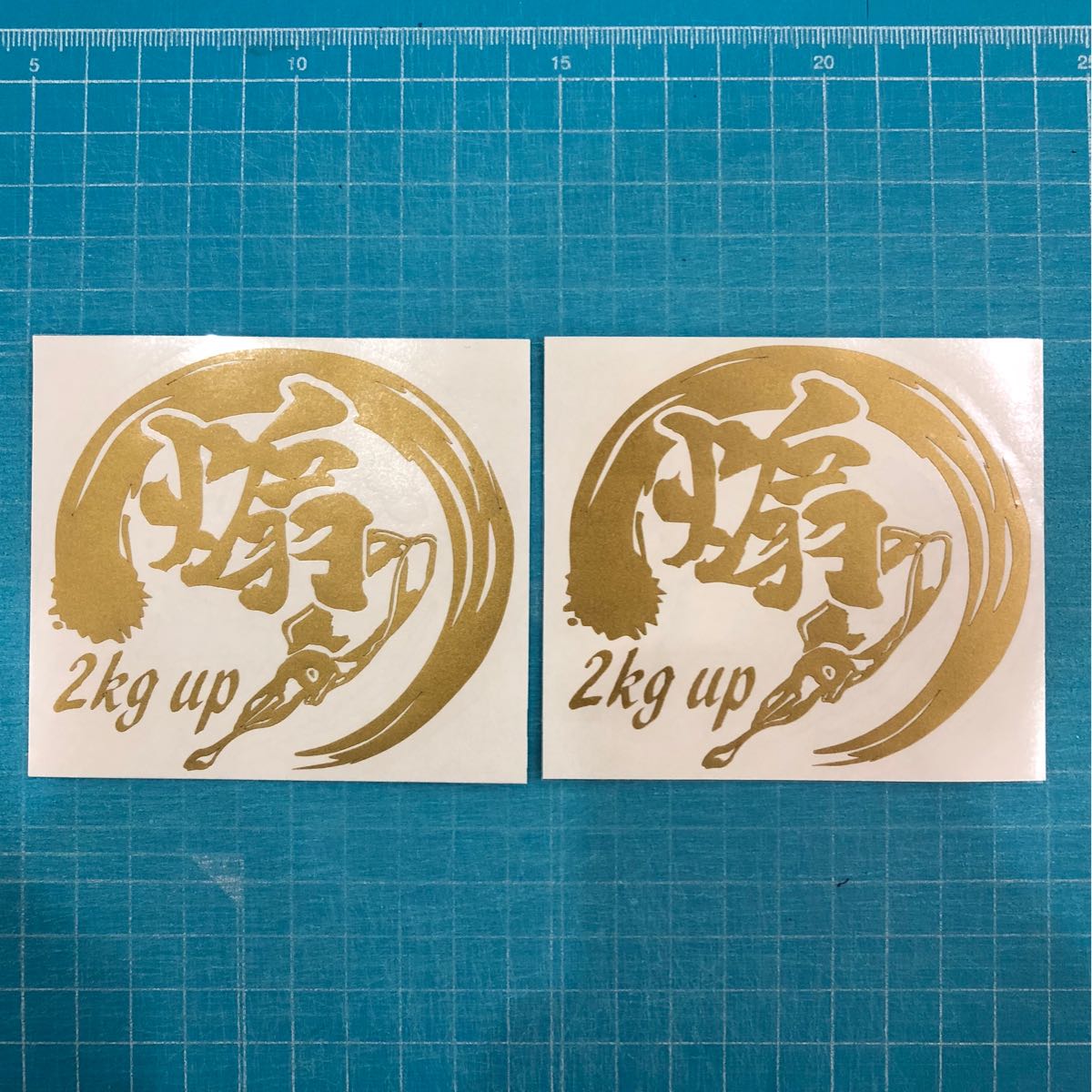 - 送料無料 2枚セット 煽り烏賊 2kg up ステッカー 小サイズ 金色 イカ 煽り アオリ コウイカ エギング ルアー
