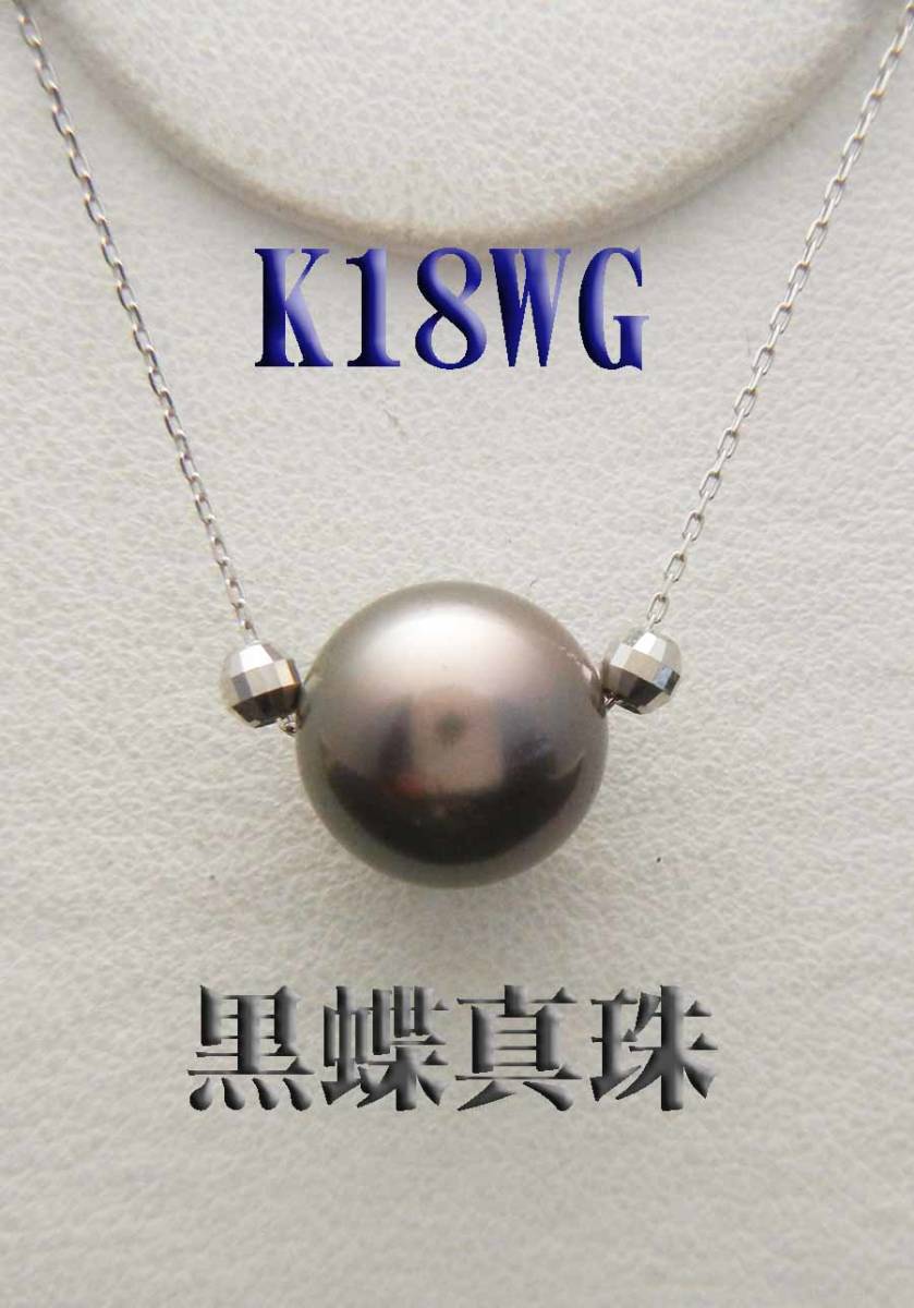 - 限定特価!新品 K18WG 18金 黒蝶真珠 10mm ネックレス ミラーボール K18ホワイトゴールド