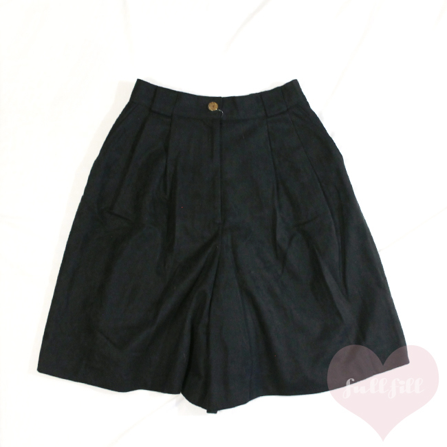 - キュロットパンツ 古着 昭和 レトロ スエード調 ブラック 黒 シンプル 70s80s ショートパンツ レディース古着 used 無地 ビンテージ