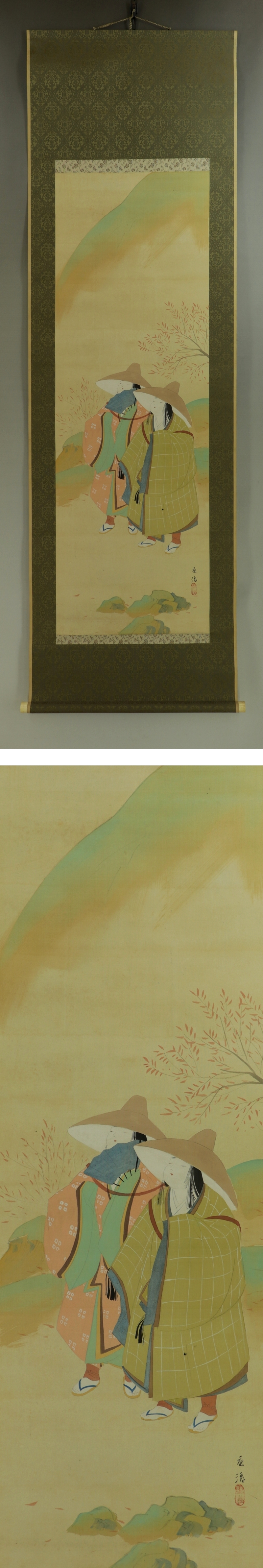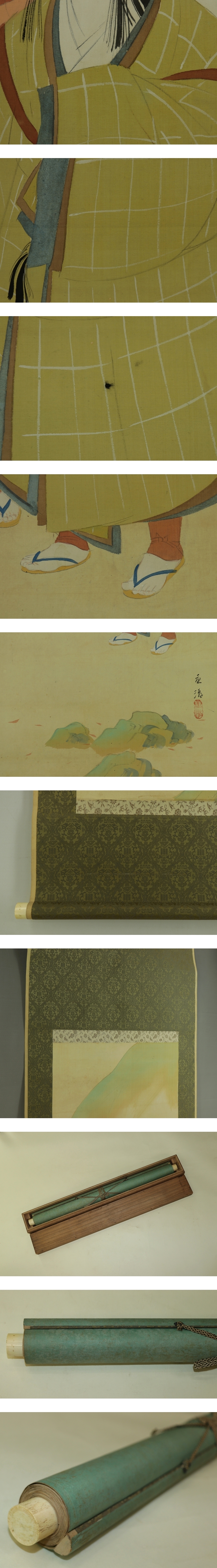 - 【肉筆】重清銘【美人図】◆絹本◆合箱◆掛軸 y03038