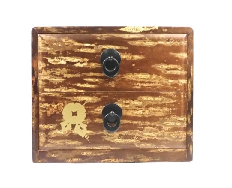 - 模様の出方、風合いが美しい逸品!昭和ビンテージ 桜皮細工 樺細工 二つ引き箪笥 小箪笥 美品 1980年代 SKT601