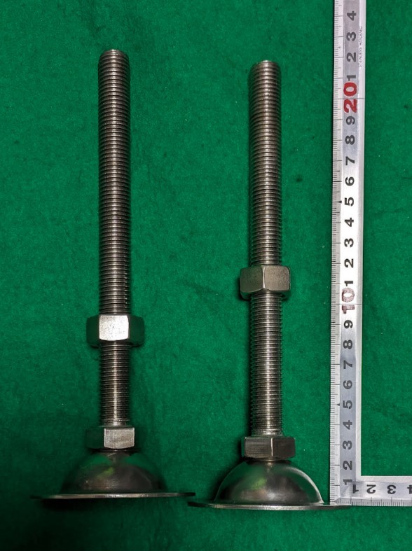 - 【中古・送料無料】■2本セット!ステンレス アジャスター 底板Φ75(球座挙動) h=220mm(ネジ部M16・180mm)