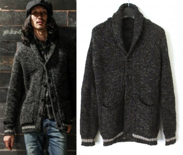 > 定価2.4万 ラウンジリザード SAINT ANDREショールカラー ニット カーディガン 2 チャコールグレー