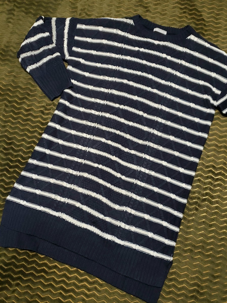 - トップス ロングセーター ニットボーダー ネイビー×ホワイト ざっくり ゆったり体型カバー 長袖