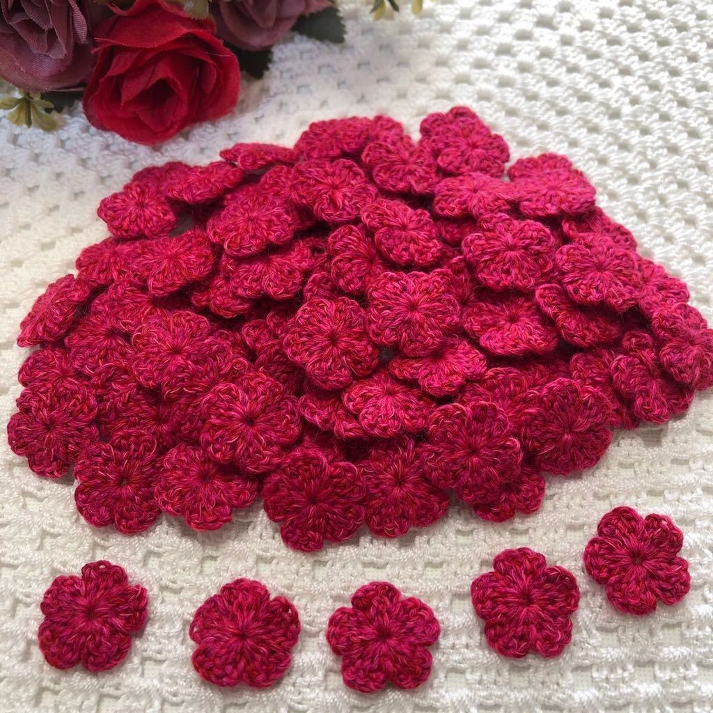 > (No.50)☆ハンドメイド☆パールビーズなし 【赤系ミックス】100枚 綿糸 モチーフ パーツ等に