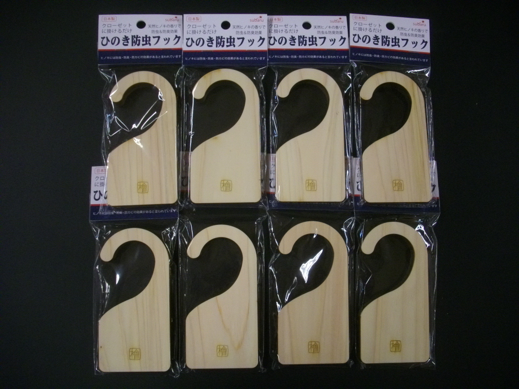 - 新品・未使用 クローゼット に 掛けるだけ ひのき 防虫 フック 日本製 made in japan 防虫 防臭 ハンガー 押入 8個口 檜 桧 ヒノキ