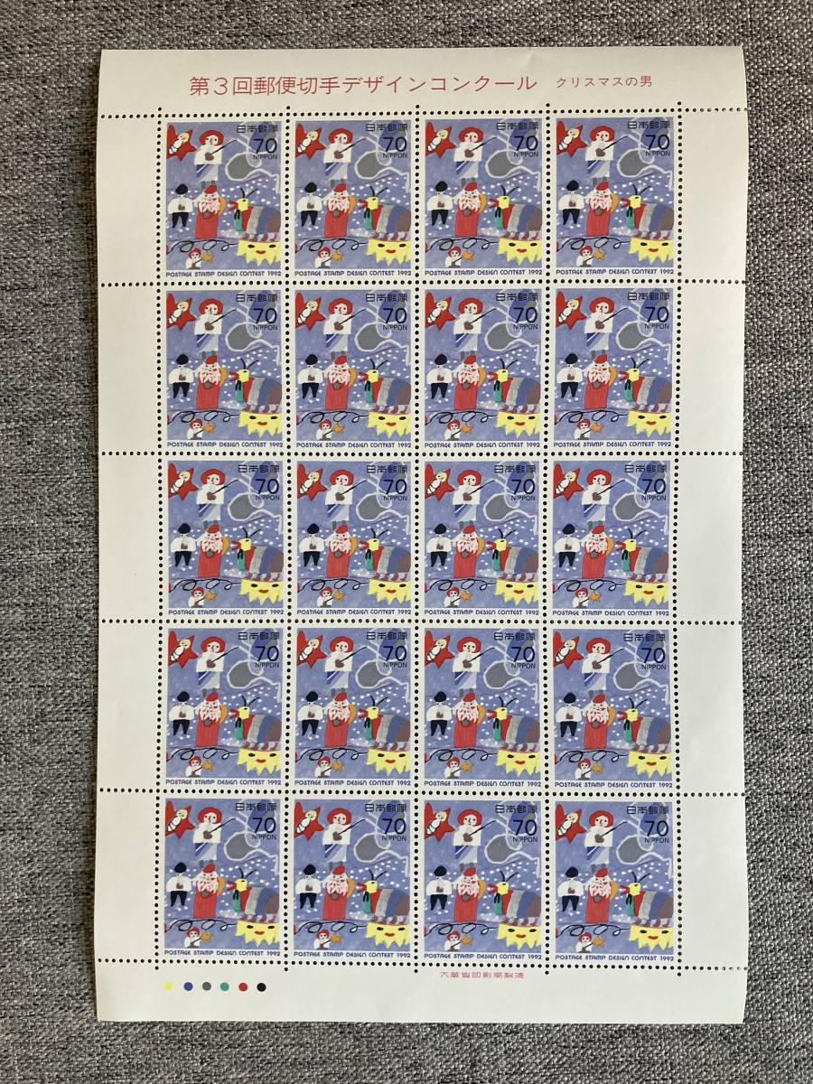 > ★未使用 第3回 郵便切手 デザインコンクール クリスマスの男 平成4年 1992年 切手シート 70円20枚 日本郵便