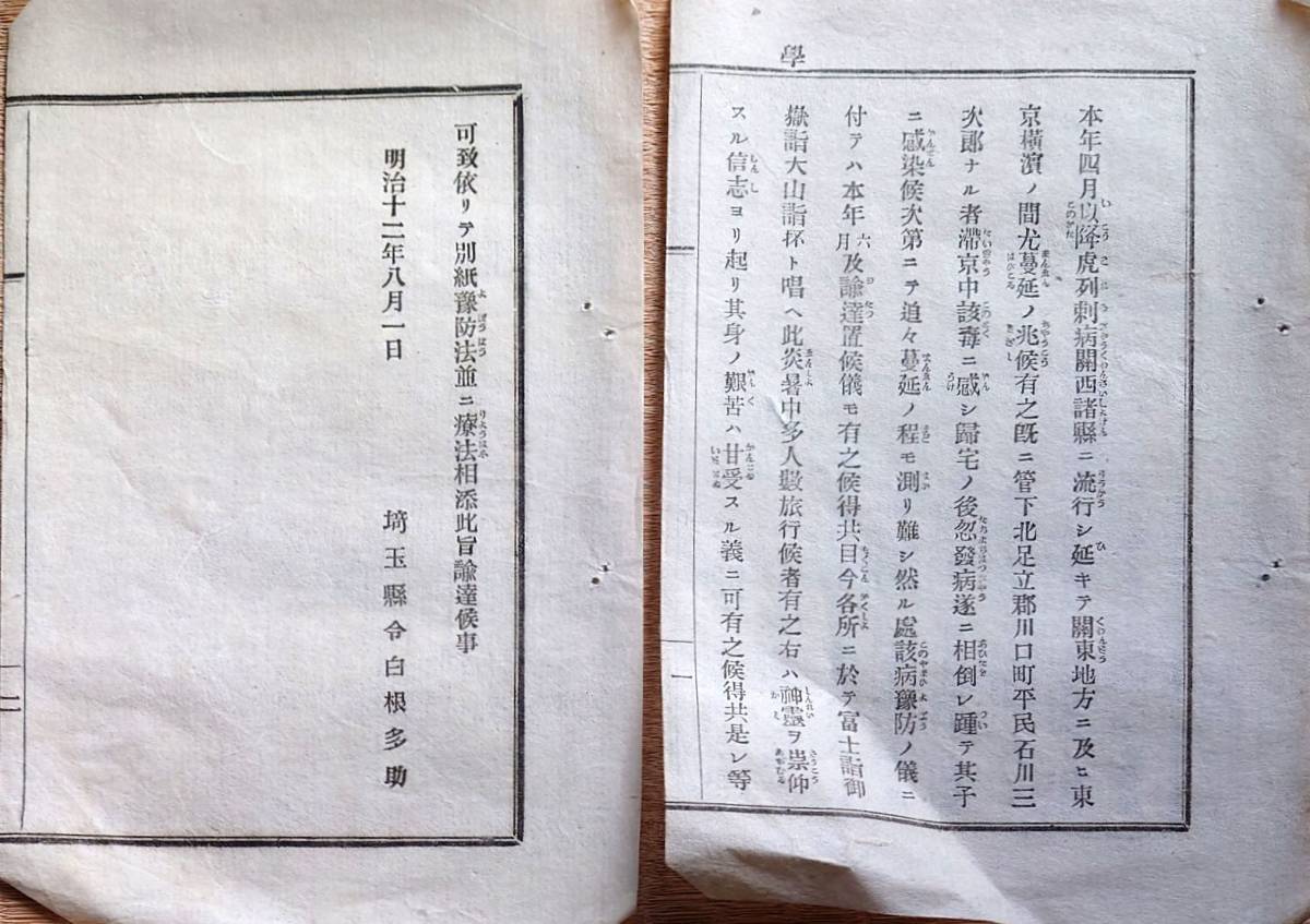 - f24012610〇明治布告布達 コレラ病東進 コレラ病予防法 埼玉県 明治12年〇和本古書古文書