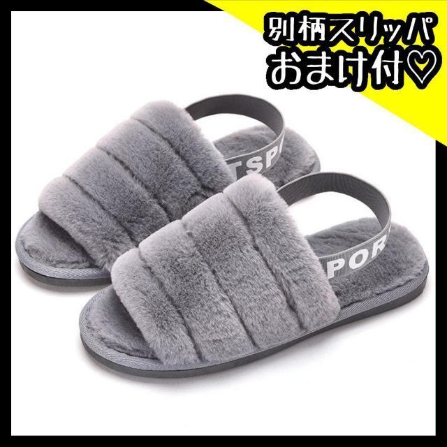 - 26cm★脱げにくい♪グレー★灰色★ファーサンダル★ボアスリッパ