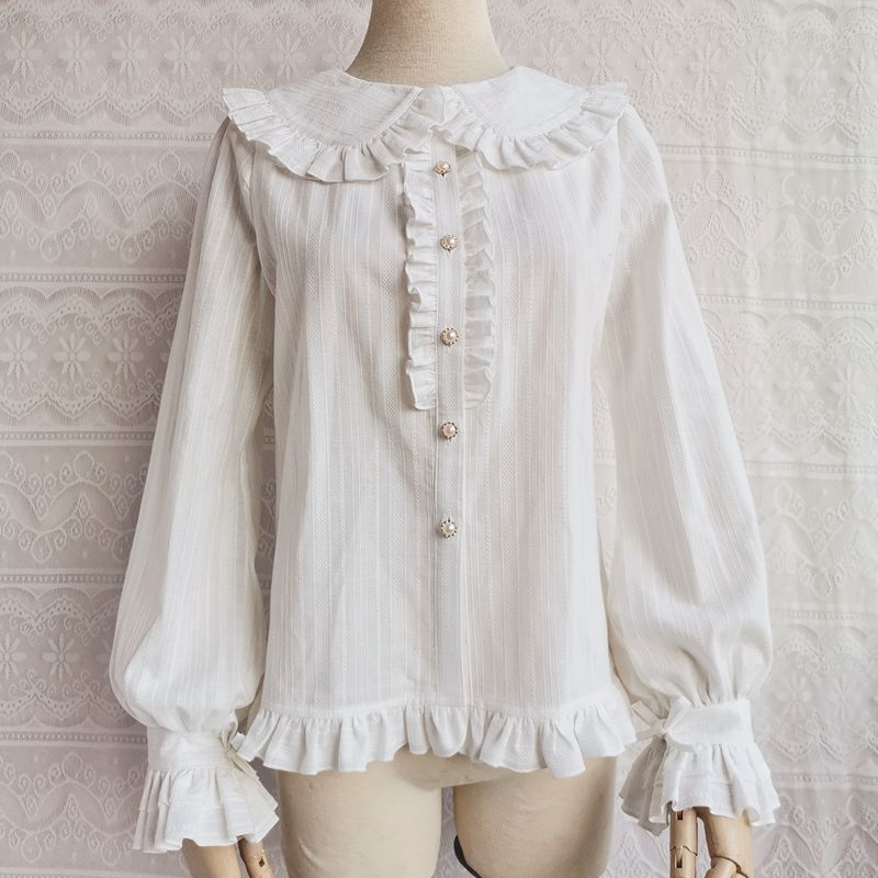- ロリータ 長袖 ブラウス 秋 冬 ロリィタ XS-3XLレディース 新デザイン ホワイト ピンク フリル リボン ゆめかわいい ゴシック ゴスロリ