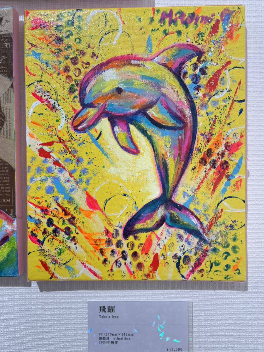 > ★真作 ★絵画 原画 油彩画 キャンバス アート 動物画 直筆サイン 現代アート イルカ ドローイング 油絵 銀座展示 送料無料