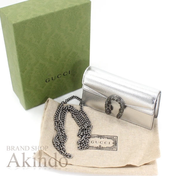 - 【新品】グッチ チェーンショルダー ッグ スーパーミニバッグ デュオニソス シルバー レザー 476432 GUCCI レディース 斜め掛け