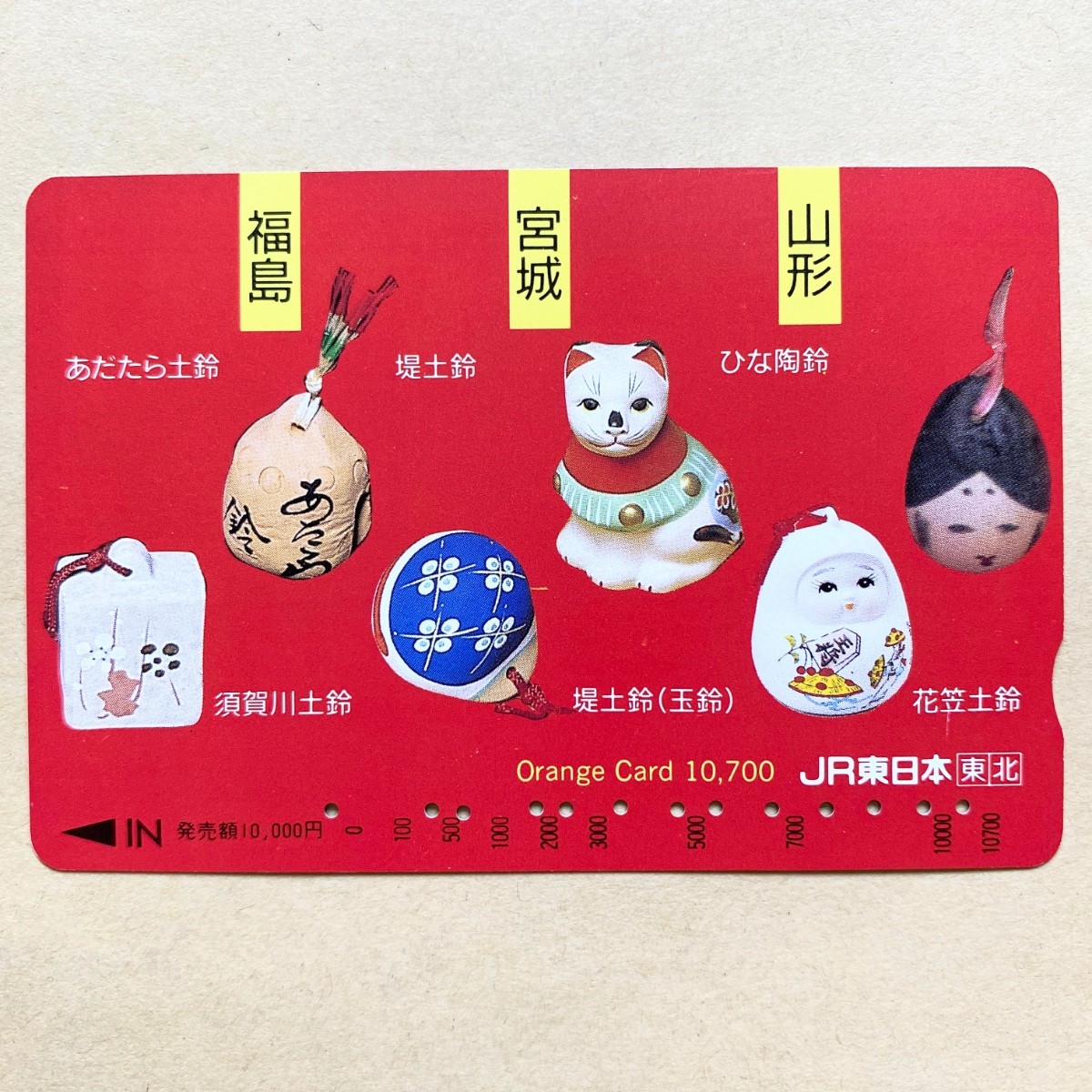 - 【使用済】 オレンジカード JR東日本 福島 宮城 山形 土鈴 陶鈴