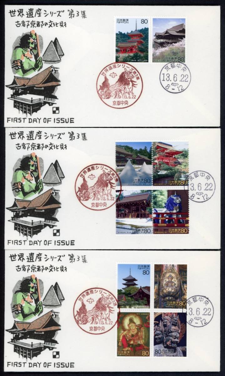 - 0150 【FDC】第2次世界遺産シリーズ第3集[京都中央/13.6.22/渡辺版](解説書なし)