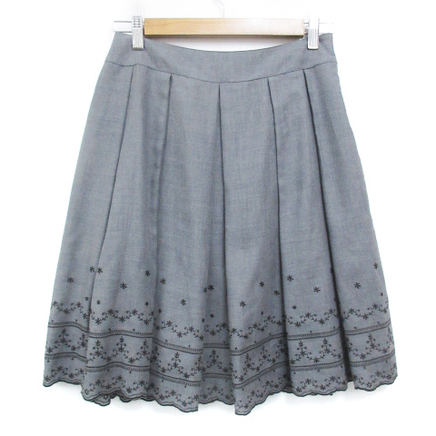 - クミキョク 組曲 KUMIKYOKU プリーツスカート ひざ丈 刺繍 2 グレー /FF54 レディース