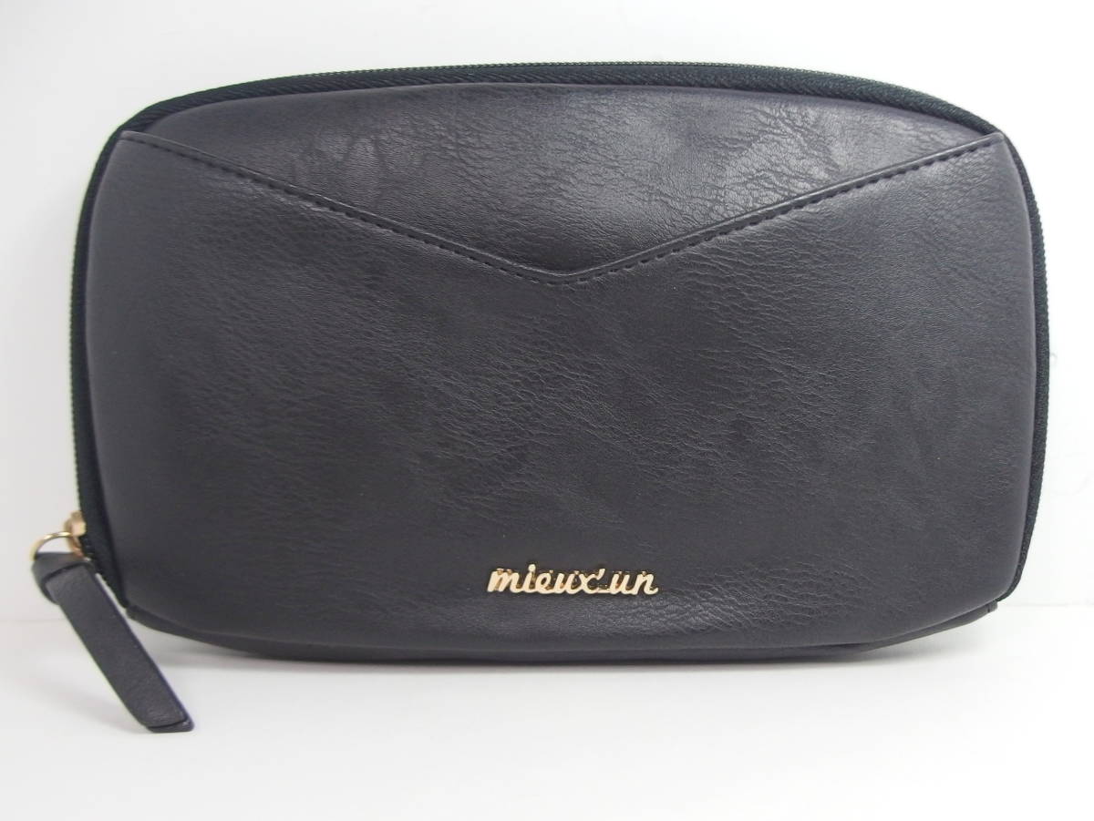 > ♪☆mieux'un 2way ミニ ショルダーバッグ ポーチ クラッチ フェイクレザー ブラック 黒 カードポケット付き ななめ掛け 鞄 ミュウアン
