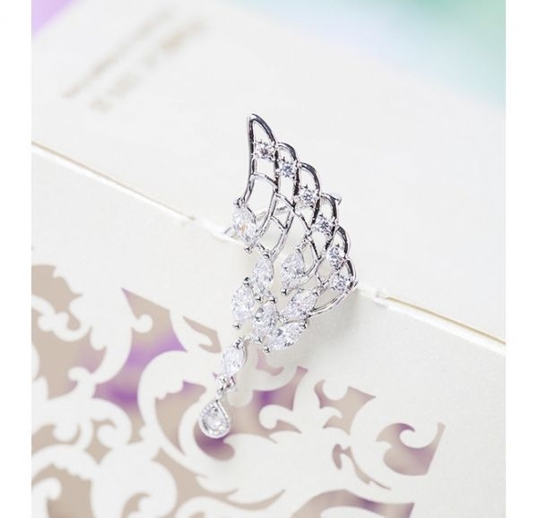 - 即決 厳選 逸品 耳が痛くならない イヤリング イヤーカフ シルバー 天使の羽 フェザー 15連CZダイヤモンド キュービックジルコニア 片耳用