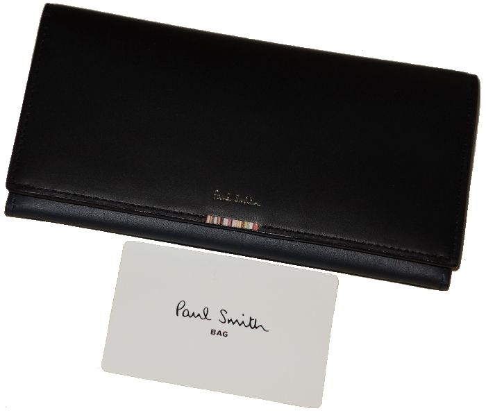 - ポールスミス Paul Smith★長財布 かぶせタイプ★牛革★マルチストライプ タブ★ネイビー