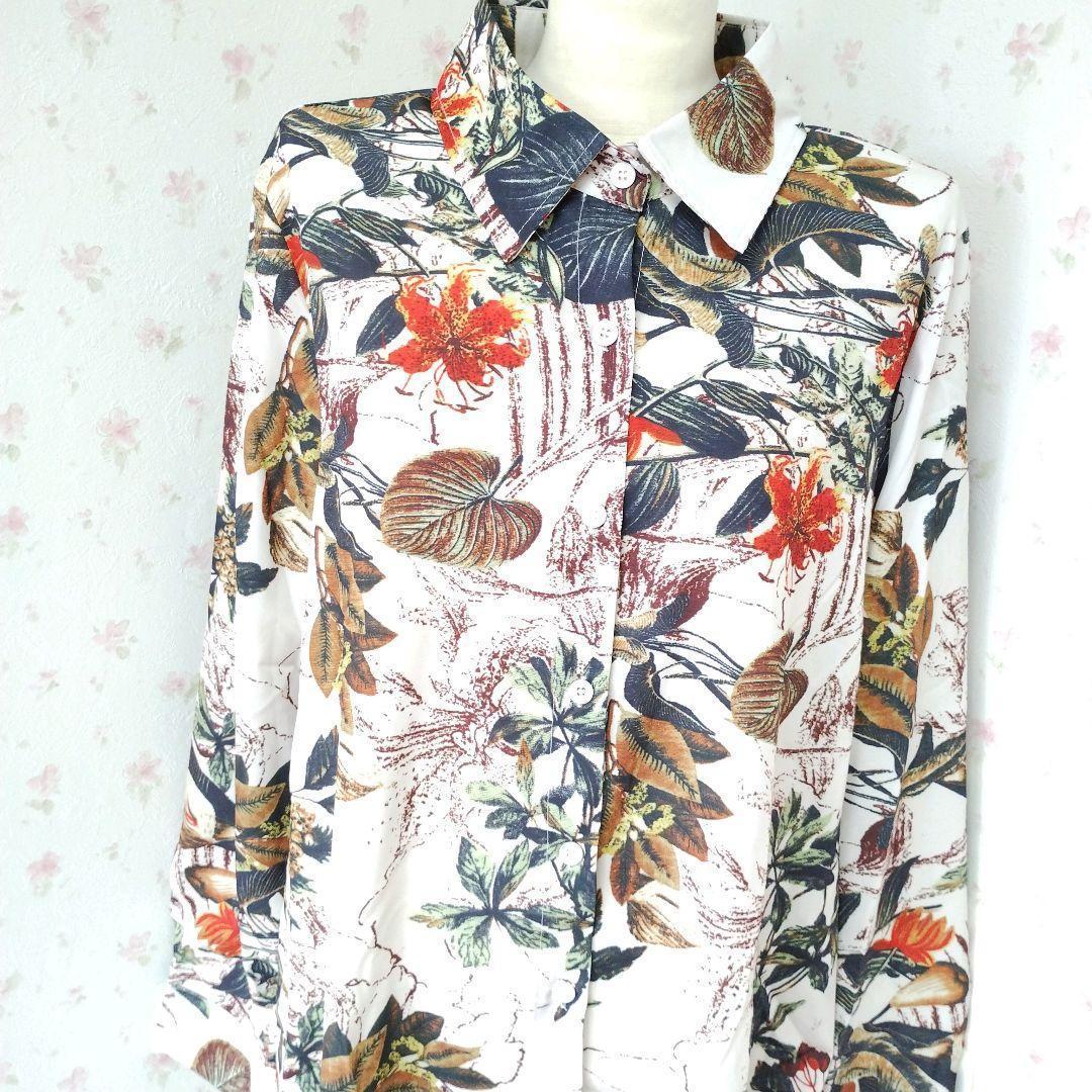 - 【ホワイト花柄★Lサイズ】長袖シャツ/ブラウスレディース