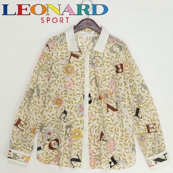 > ヴィンテージ◆LEONARD SPORT レオナール ロゴ総柄 薄手 コットン 長袖 クレリックカラー シャツ ブラウス 42
