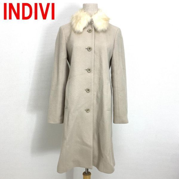 - A1523 インディヴィ ロングコート ウール ファー ベージュ INDIVI ファー取り外し可能 裏地あり 38