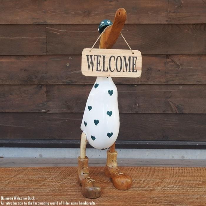 - ウェルカムボード アヒルさん ハート 緑 Lサイズ ウェルカム人形 あひる ハンドメイド 動物インテリア 動物置物 木製オブジェ