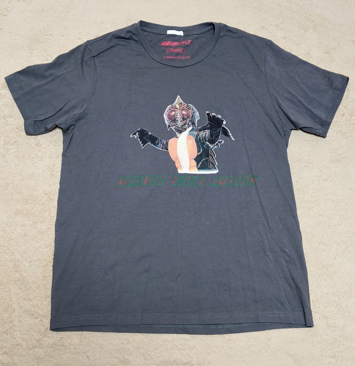 - 【即決・送料無料】仮面ライダーシリーズ45周年記念 Tシャツ アマゾン Lサイズ 半袖 グレー GU MASKED RIDER AMAZON 昭和ライダー