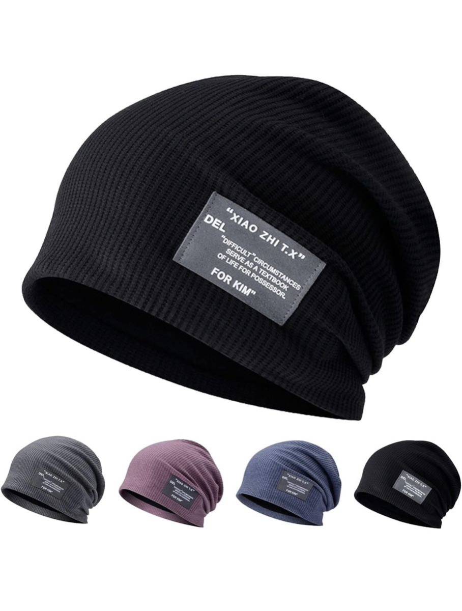 > ニット帽【2層構造・吸汗通気・抗菌防臭】無地 シンプル 医療用 ケア帽子 ニットキャップ ビーニー 肌に優しい オールシーズン 黒
