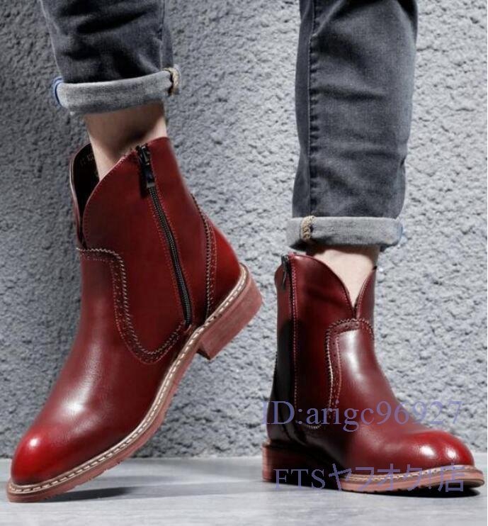 > V877☆新品秋冬ショートブーツ メンズ マーティンブーツ 靴 紳士靴 短靴 ドレープブーツ カジュアル ワイン 26.5cm