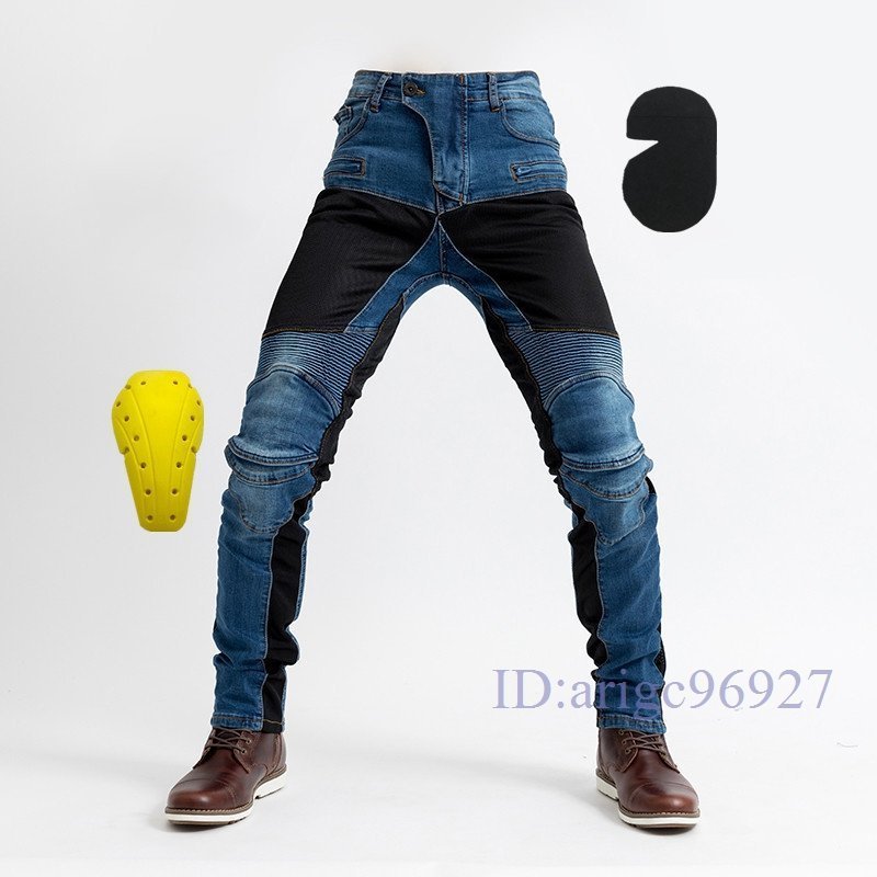 - S982☆新品メンズ デニムパンツ バイクパンツ ジーンズ メッシュ 防風耐磨 大きいサイズあり 2色サイズ選択可 ブルー M