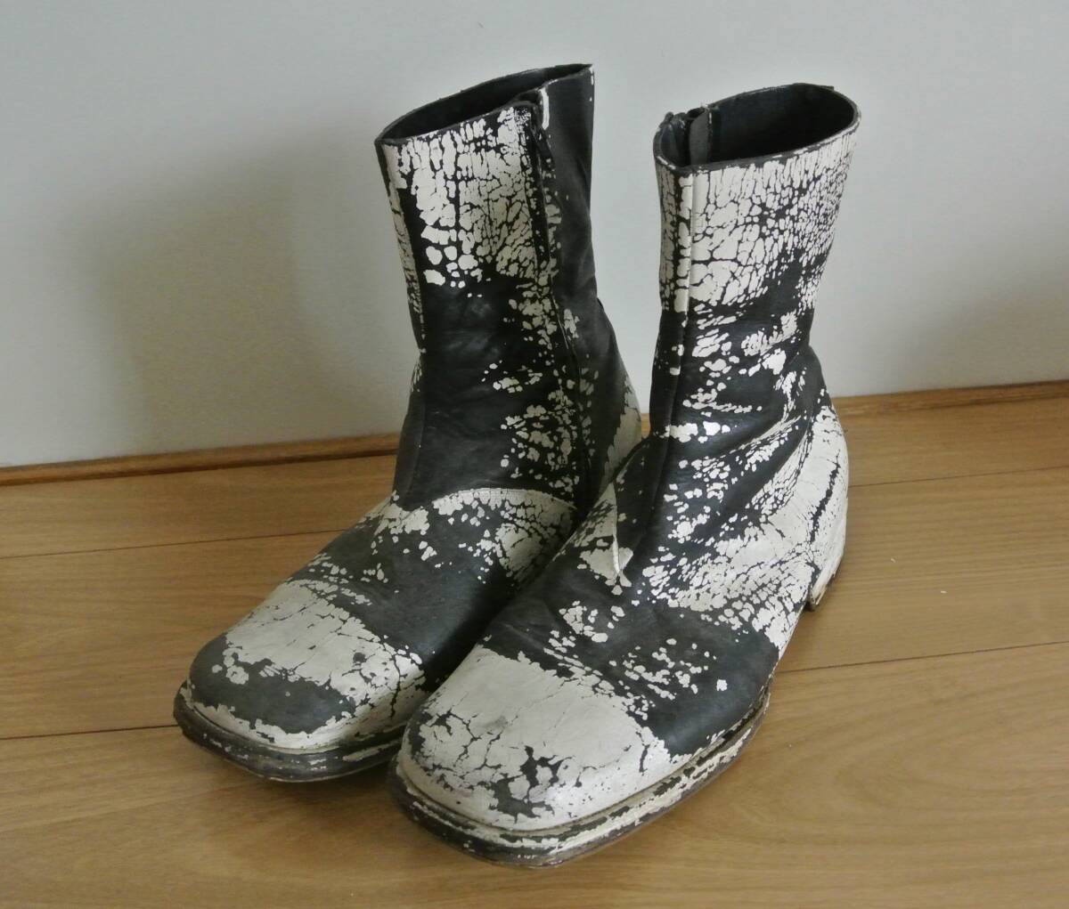 > Maison Martin Margiela 10/メゾンマルタンマルジェラ ペンキコーティング ビニールタグ サイドジップ スクエアトゥ ブーツ/41