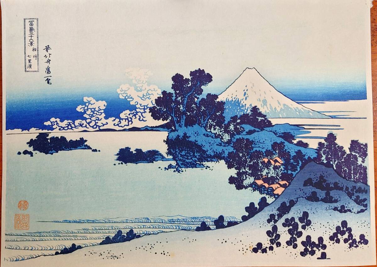 - f20240206011〇富嶽三十六景 葛飾北斎筆 相州七里浜 古法純手摺彩色木版画 世界的に有名な作品 東京国立博物館監修 昭和年代〇和本古書