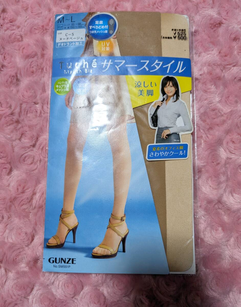 - 未使用 パンティストッキング ヌードベージュ キュプラ混 冷感素材 M〜Lサイズ すべりとめとめ付き