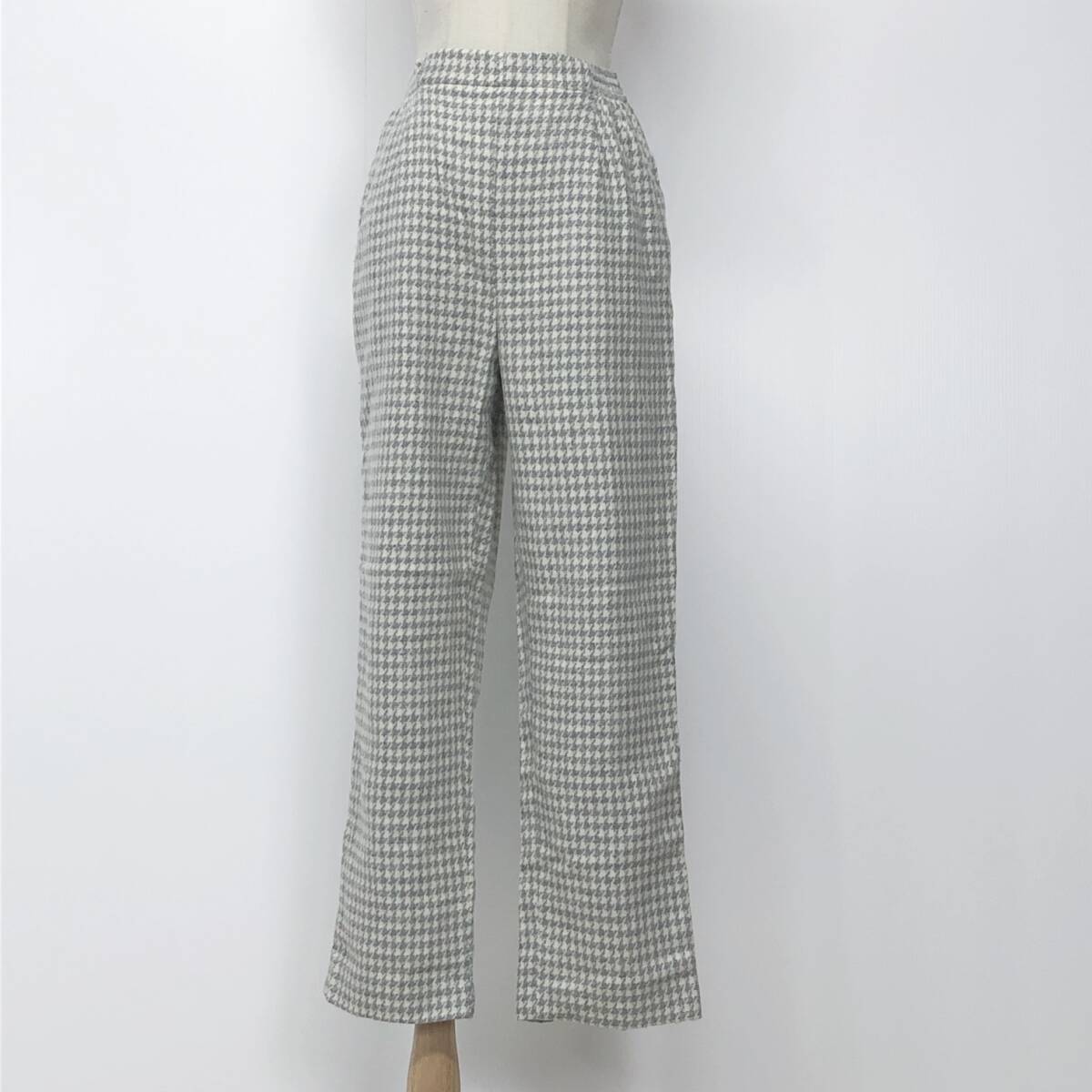 - Y0882 Sun Ocean サンオーシャン レディース ボトムス カジュアルパンツ ニット Lサイズ グレー 灰 ホワイト 白 千鳥格子 毛素材含 秋