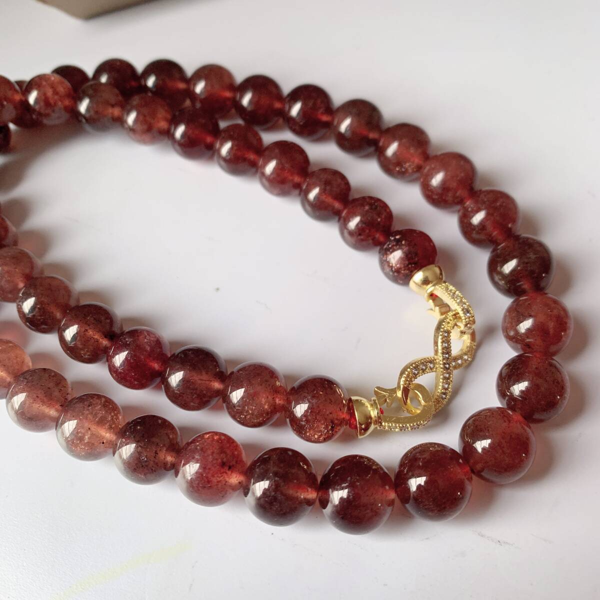> ◇ストロベリークォーツ(苺水晶)◇色濃いめ◇キラキラ◇ネックレス◇パワーストーン◇天然石◇巾着袋付き◇プレゼントにも 027P22901