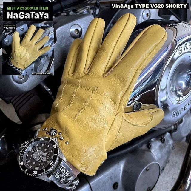 - Vin&Age ヴィンアンドエイジ VG20 NAUGHTY 牛革 ナーティー ショートグローブ SHORTY ショーティ スタッヅ付 Mサイズ マスタード