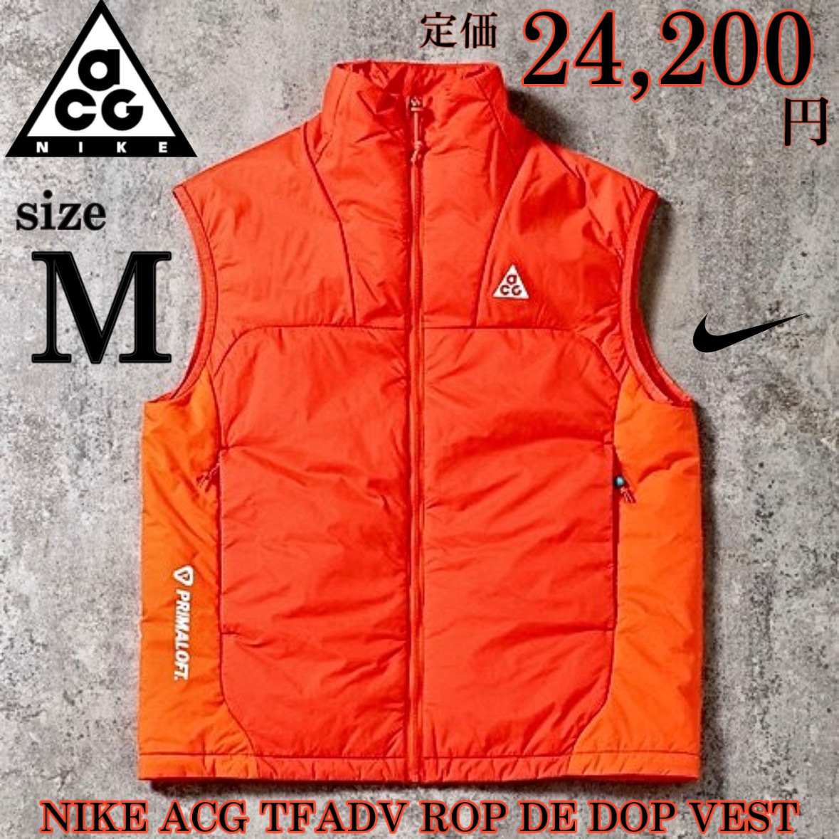 > 新品 Msize ナイキ エージージー 中綿 ベスト 定価2.4万 オレンジ NIKE ACG トレイル ランニング ジョガー プリマロフト 撥水 カラビナ