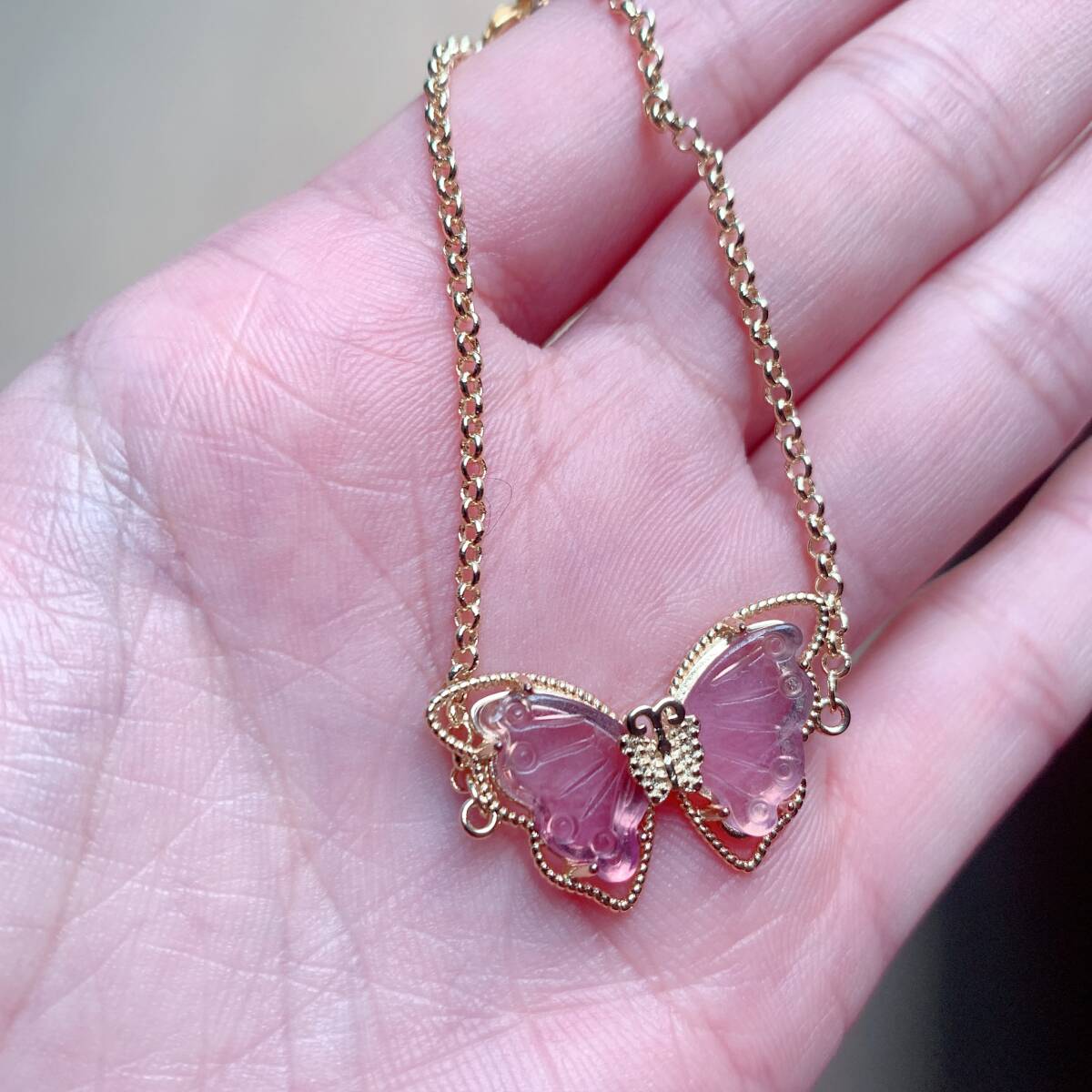 - ◇フローライト◇螢石◇蝶形 彫刻◇ブレスレット◇パワーストーン◇天然石◇巾着袋付き◇プレゼントにも 023B30601