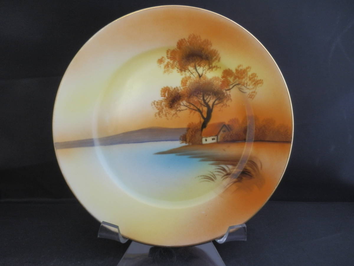 - ツリーインザメドウ 湖畔の風景画 ケーキプレート1枚 直径 19.5cm ☆ オールドノリタケ