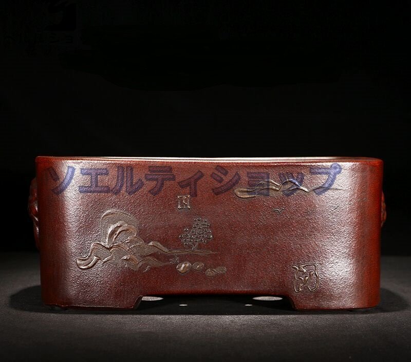 - ◆宜興獅子頭の長方鉢 紫泥 鉢 盆栽鉢 植木鉢 多肉植物 ◆