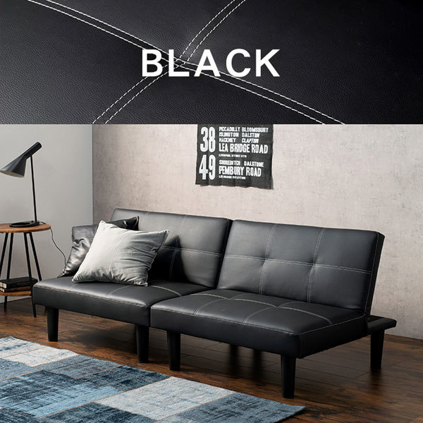 > 二人掛けソファ 2台セット 3段階リクライニング ブラック色 ソファベッド カウチベッド LZH-4440