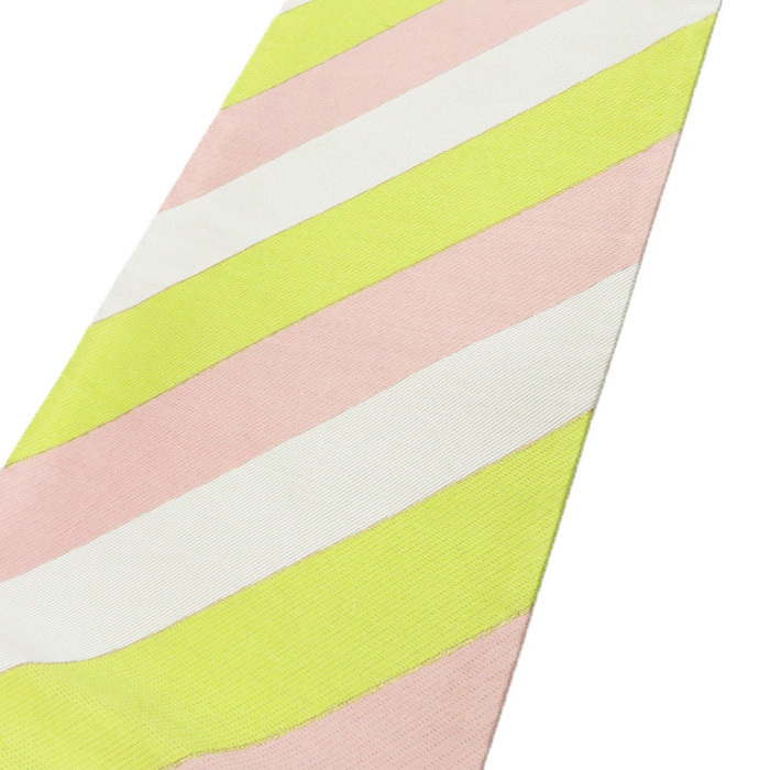 - 【FINAL PRICE】 振袖用 袋帯 縞模様 リサイクル 成人式 結婚式 結納 鶸色 桃花色 白 きもの北條 A591-25 【中古】
