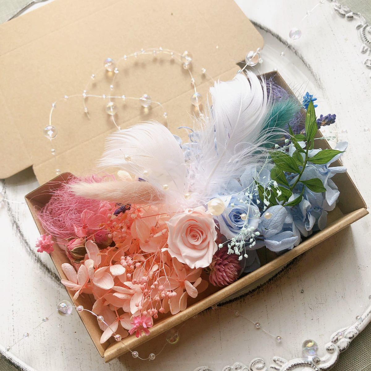 - 天使の羽ベビーブルーピンク花材詰め合わせ