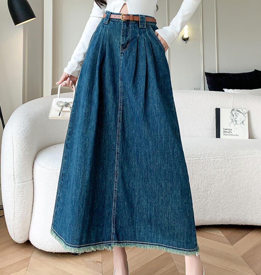- 春新作 / あす楽 デニムスカート フレアスカート マキシ デニム マキシ丈 スカート ミモレ丈 膝下 ロングスカート / S-XL