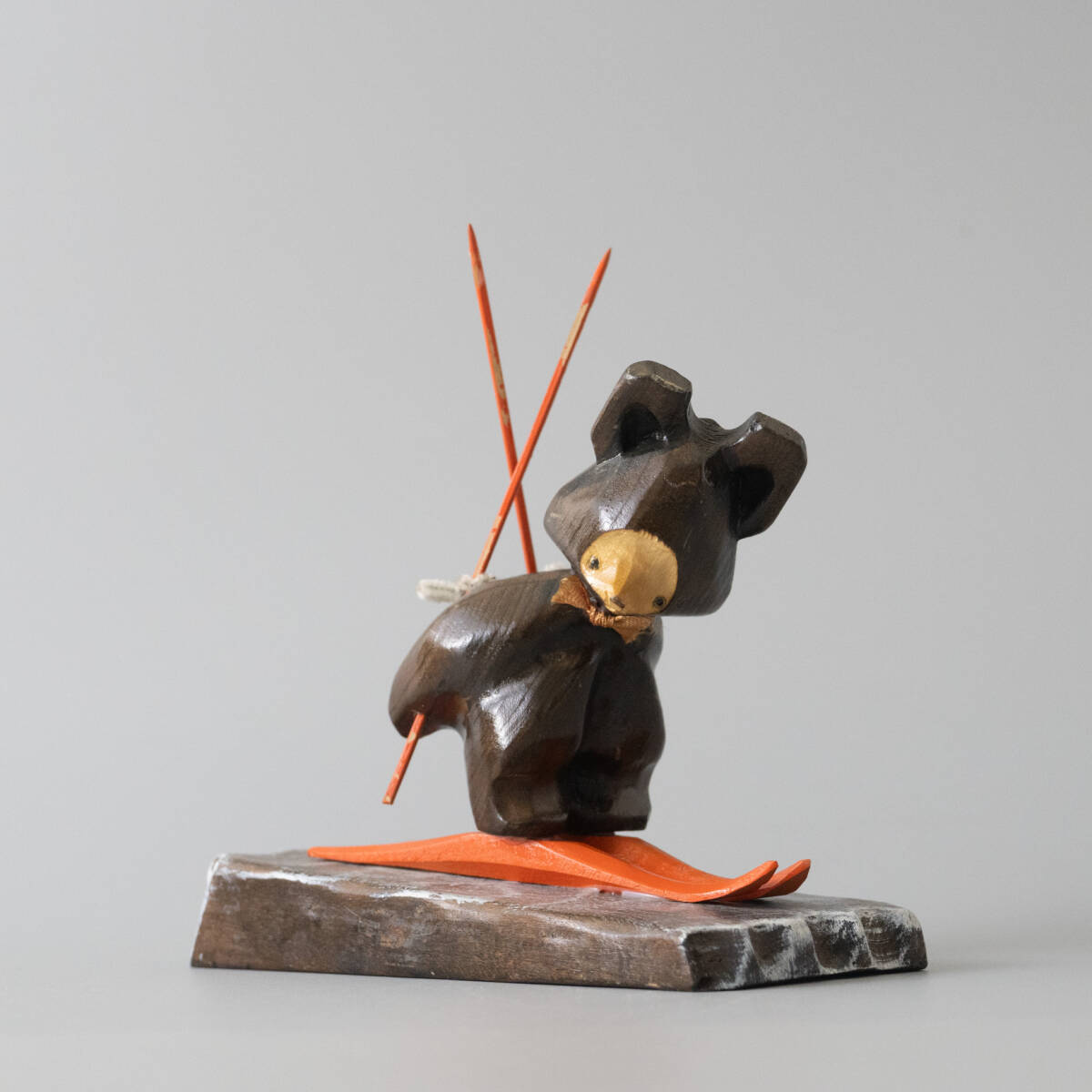 - 木彫の熊 北海道 民芸品 木彫り熊 木製彫刻 飾り オブジェ 置物 民藝 可愛い 木彫熊 スキー