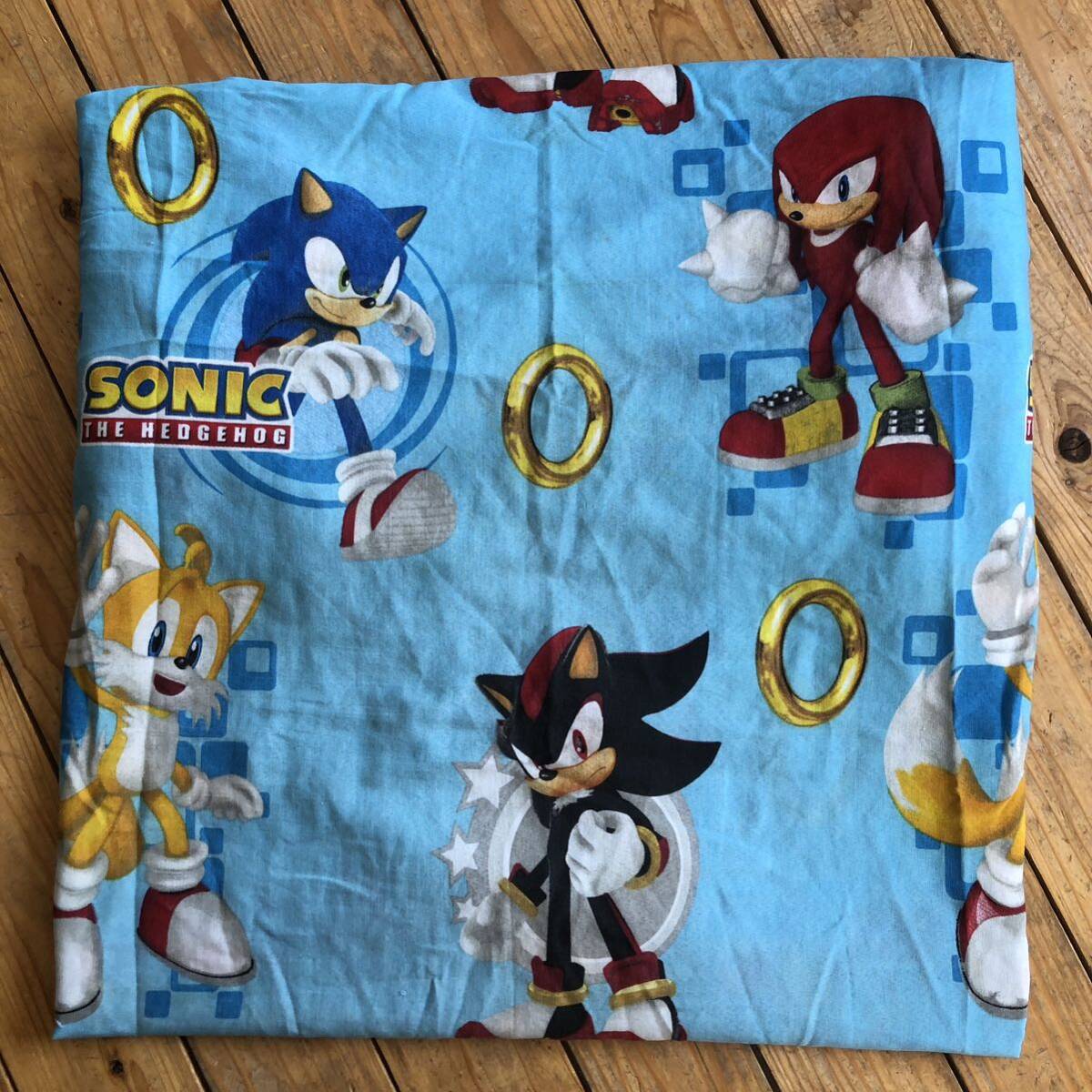 - USA ヴィンテージ ベッドシーツ ソニック セガ SEGA リメイク生地 ボックスシーツ ハリネズミ キャラクター アメリカ仕入 総柄 B1839