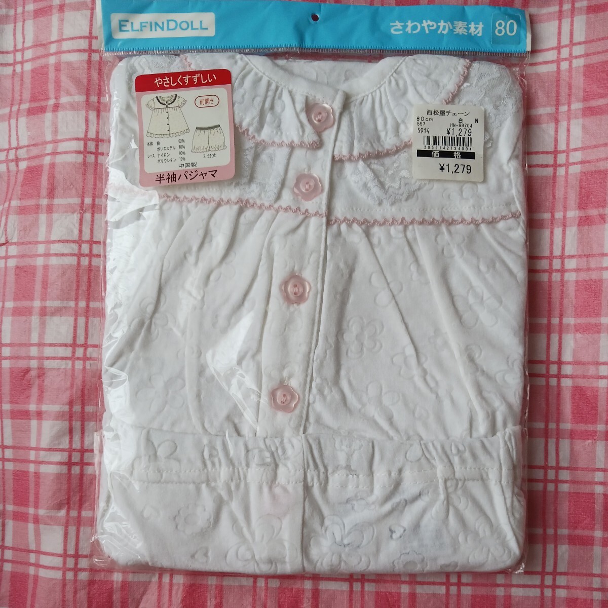 - キッズ 半袖パジャマ 80㎝ 前開き 半袖 パジャマ 花柄 白 女児 女の子 西松屋 80 80サイズ さわやか素材 3分丈